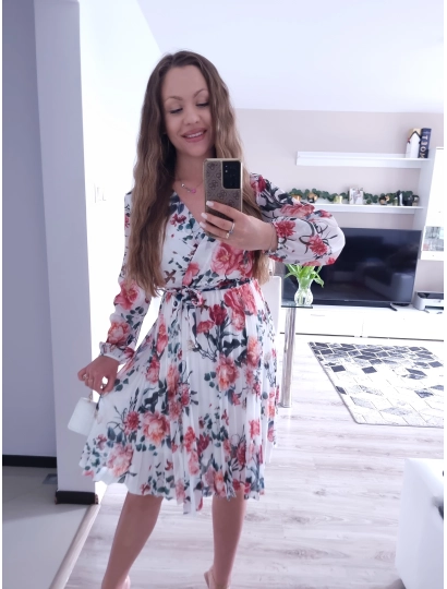 Sukienka ESMARA róż/krem midi z rozcięciem
